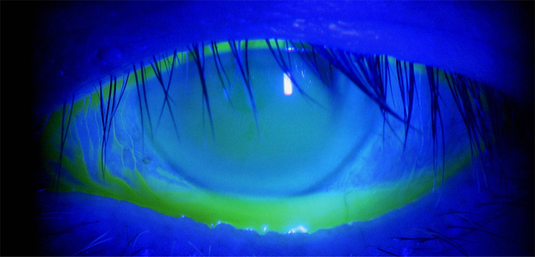 総涙小管閉塞(=涙の通り道の閉塞)により涙がこぼれるほど下瞼にたまった状態